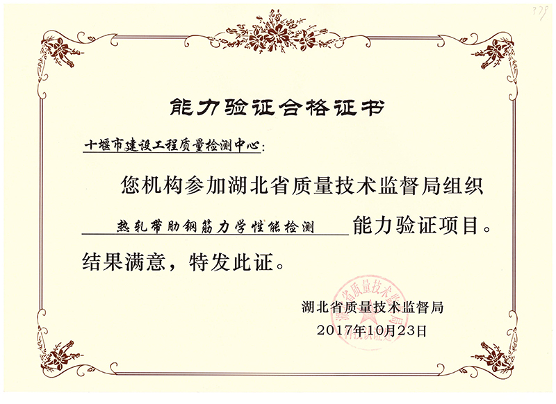 2017.10.23湖北省質(zhì)量技術(shù)監(jiān)督局熱軋帶肋鋼筋力學(xué)