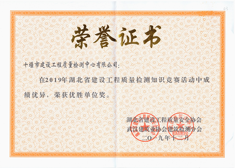 2019.12湖北省工程質(zhì)量檢測知識競賽活動優(yōu)勝單位